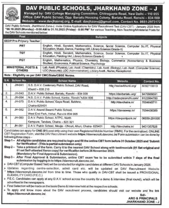 DAV JHARKHAND ZONE J RECRUITMENT NOTICE 2026 | Notice inviting Quotation for Bus. |
